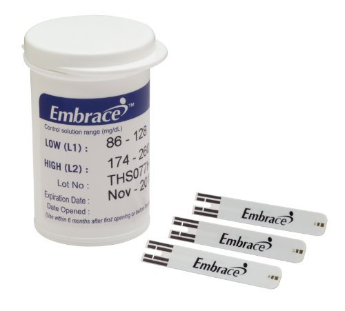 -. Binding : Health and Beauty -. Brand : Embrace -. EAN : 0894030002024 -. Feature : Instant Three-Step Verification test strip technology for relaibility and accuracy -. IsAdultProduct : 0 -. Label : Omnis Health -. Manufacturer : Omnis Health -. MPN : Emb-1974 -. PackageQuantity : 1 -. PartNumber : Emb-1974 -. ProductGroup : Health and Beauty -. ProductTypeName : HEALTH_PERSONAL_CARE -. Publisher : Omnis Health -. Studio : Omnis Health -. Title : Embrace¨ Blood Glucose Test Strips, 50ct Vial -. UPC : 894030002024