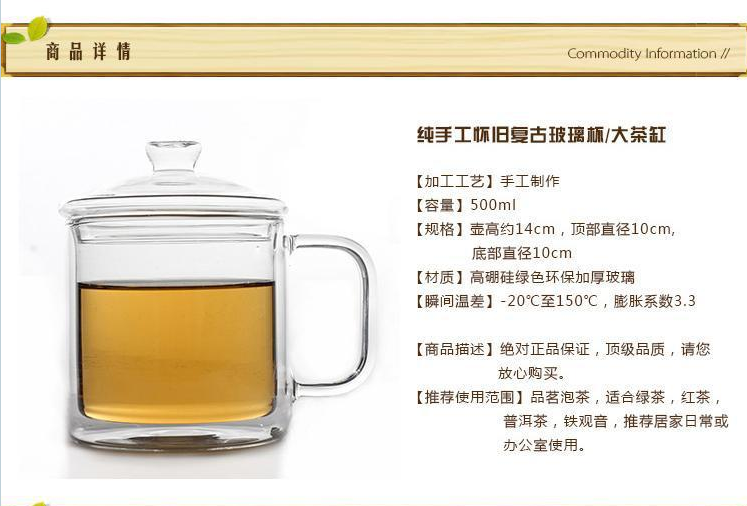 Size: height of about 12.5cm diameter of about 9cm capacity of about 400mlMaterial: High-borosilicate green glassColor: colorless, transparent