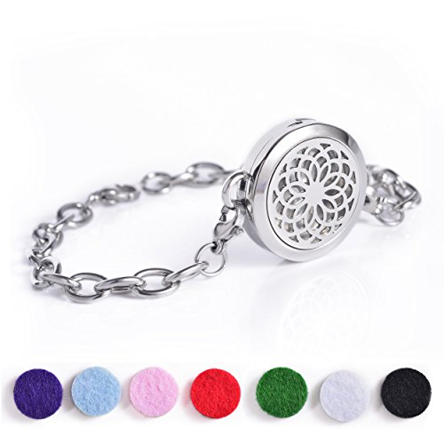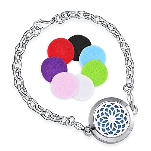 PACKAGE INCLUEDED - stainless steel diffuser locket BRACELET with 10 refillable felt pads + Black Velvet Bag.
