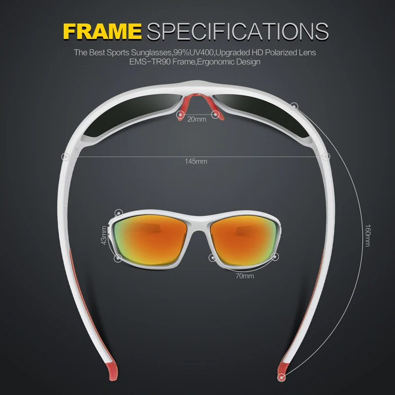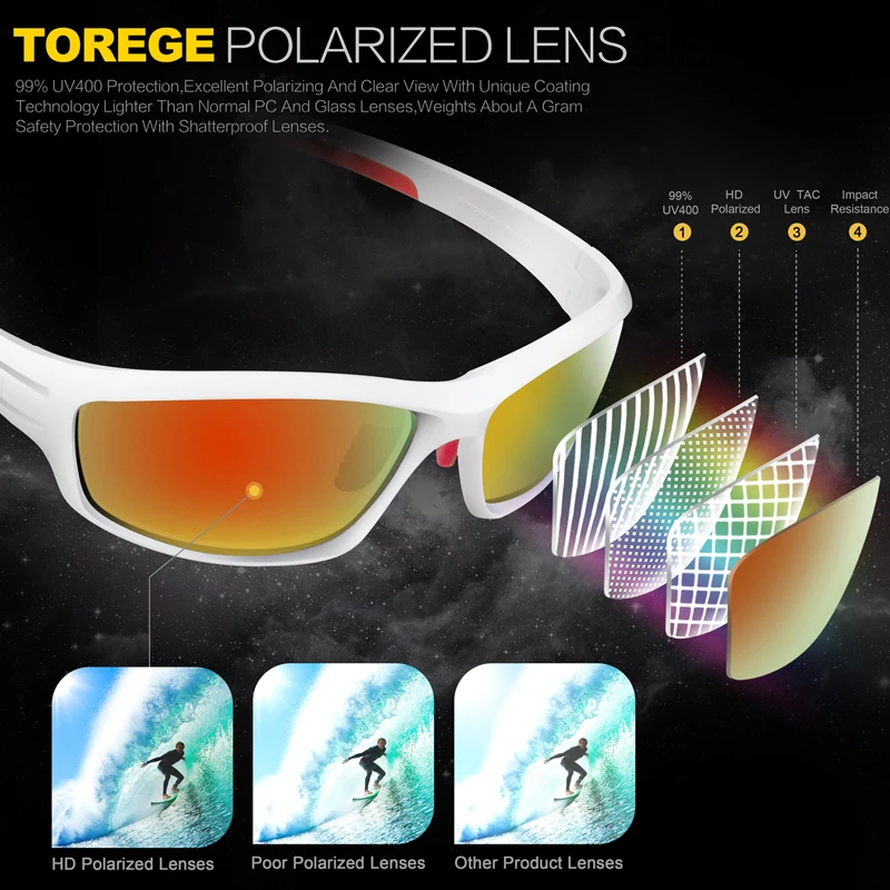 Lens:Polarized lenses block 100% of the sun's harmful UVA & UVB rays