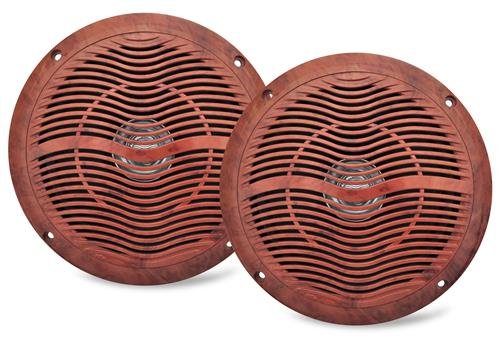 - Feature : General features: , Marine CD receiver with AM/FM tuner , Built-in MOSFET amplifier (22 watts RMS/50 peak x 4 channels) , Plays CDs, CD-Rs, and CD-RW discs, including discs loaded with MP3 and WMA music files , Detachable face with 1-1/2 line display and variable illumination / Marine-specific features: , Conformal-coated PCB circuit board , Covered CD slot, USB port, and auxiliary inputs , Marine remote ready Audio features: , System Q Sound Control (8 EQ curves and a 3-band equalizer) , low-pass filter and sub level control , Speaker Setting function for different sizes and types of speakers , Drive Equalizer feature adjusts volume based on level of exterior noise , Sound reconstruction for improved compressed music playback / Expandability: , inputs: front-panel USB and auxiliary inputs , built-in iPod, iPhone, and iPad control (see compatible devices below) , Internet radio control and App Mode with iPhone , compatible with SiriusXM satellite radio tuner , outputs: 6-channel preamp outputs (2.5-volt front, rear, sub) Works with: iPod touch (1st, 2nd, 3rd, 4th, 5th generation), iPod Classic, iPod Nano (3rd, 4th, 5th, 6th, 7th generation), iPhone, iPhone 3G,3GS,4,4S,5,5S,5C,iPhone 6,6+ / Amplifier: IC Power 100 Watts x 4 Output Variable Input Gain Control Power ON LED Indicator High/Low Level Input Remote Turn On/Off Speaker Output Connector Gold Plated RCA Inputs Thermal / Overload / Short Circuit Protection Heavy Duty Aluminum Alloy Heatsink Load Dump Over Voltage Dimensions: 7.87''W x 2''H x 8.0''L Weight: 3.30 (lbs) Sold as : Unit Weight :4.14 lbs. / Spekaers: 6-1/2'' Dual Cone Full Range Speakers Completely Waterproof For Marine or Car Door Use Polypropylene Cone w/ Cloth Surround Built-In Molded Grill Molded ABS Plastic Basket 1'' Aluminum Voice Coil 20 Oz. Circuit Magnet Frequency Response: 45-16Khz Impedance: 4 Ohms Mounting Depth: Only 2.5'' Cut-out: Φ135 mm Complete Pair with Wire & Mounting Hardware, Color Wood Grain