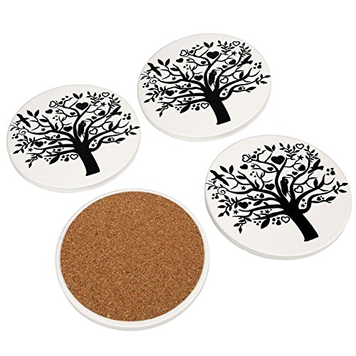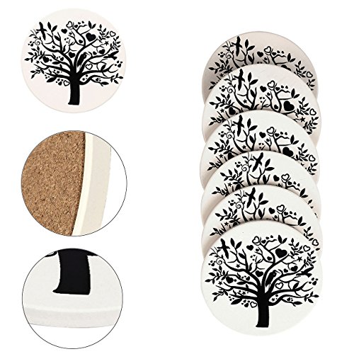 Absorbent Ceramic Stone Coaster,Yoption Set of 6 Absorbent Stone Coaster with Cork Backing for Drinks,Desktop Protection Prevent Furniture Damage,Table Decorations Cup Mat Holder (Tree of Life, Round)