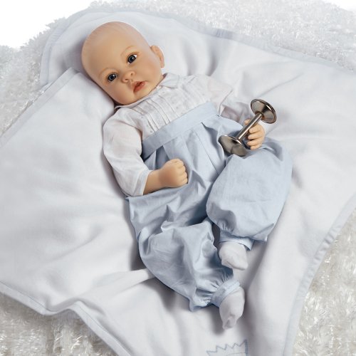-. Feature : Very realistic and lifelike, this adorable 22 inch baby boy (13 inches seated) was lovingly sculpted by Paradise Galleries' studio artist / Royal Baby P.R.Ince was artfully handcrafted from our exclusive NEW material Flex-Touch vinyl to look and feel just like a real baby! / Flex-Touch Vinyl is "soft as a baby's bottom" providing a delicate texture and realistic skin tone. The arms and legs are made from pure Flex-Touch Vinyl while the head is created in a remarkable 2 step process giving it the effect of a delicate skin on the facial features. / He comes with a weighted soft cloth body for the most lifelike feel when you cuddle him close / He has beautiful handset blue eyes, hand painted details, hand applied eyelashes and a perfectly hand painted hair to achieve the real newborn look