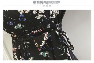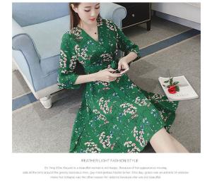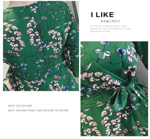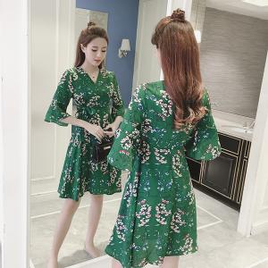 花柄ワンピース フラワーワンピース 小花柄 Vネック フレアスカート 5分袖 フレア袖 ハイウエスト プチプラ