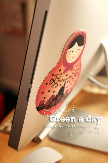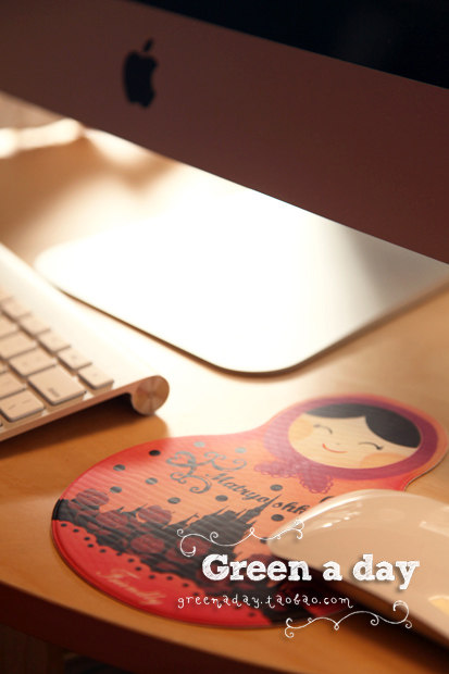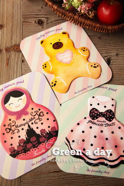 复古可爱的俄罗斯娃小熊礼服鼠标垫,可以反复贴,可水洗,还可以当电脑屏幕擦。