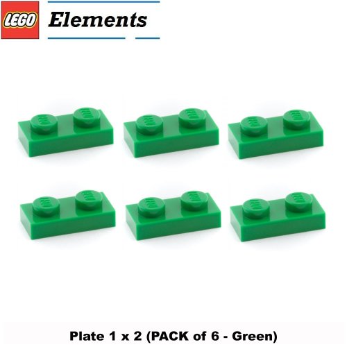 -. Title : L.E.G.O Parts: Plate 1 x 2 (PACK of 6 - Green)