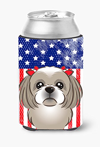 Caroline's Treasures BB2180CC American Flag And Gray Silver Shih Tzu Can Or Bottle Hugger, Multicolor