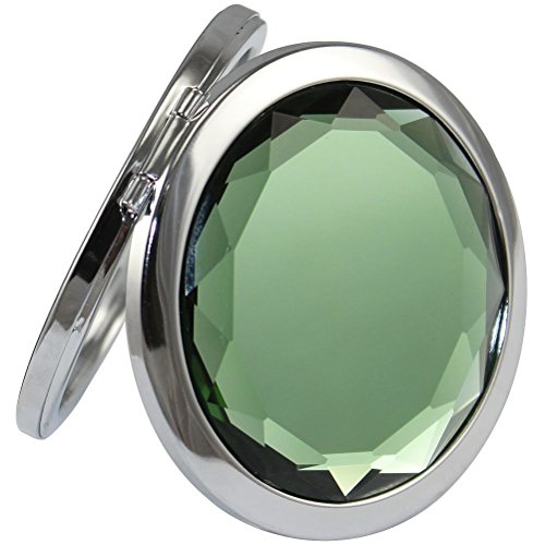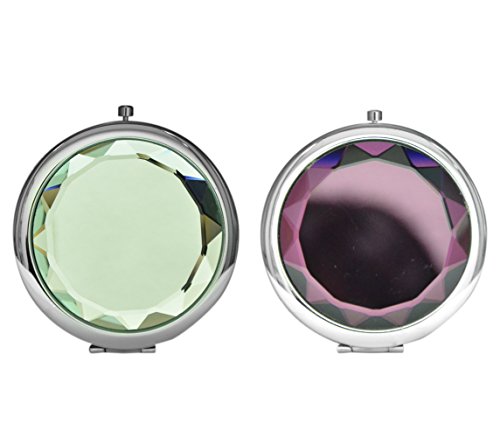 Twinkle Compact Mirrors - Deluxe Makeup Mirrors - Big Crystals Collection Set of 2 (Light Green-purple)