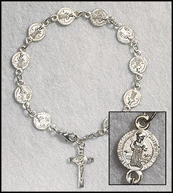 CB Silver Plate Catholic St. Benedict Exorcism Medal Rosary Bracelet, 8-Inch