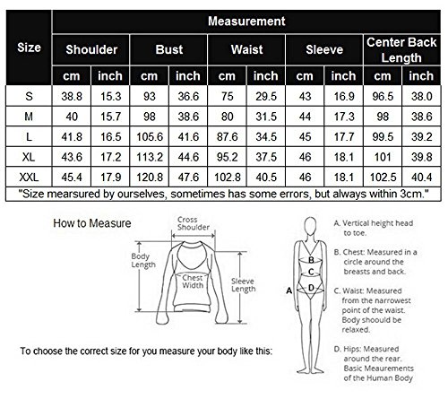 Size: There are 5 sizes (S, M, L, XL, XXL) available for the following listing. please allow 1-2cm differs due to manual measurement, thanks (All measurement in cm and please note 1cm=0.3937inch)