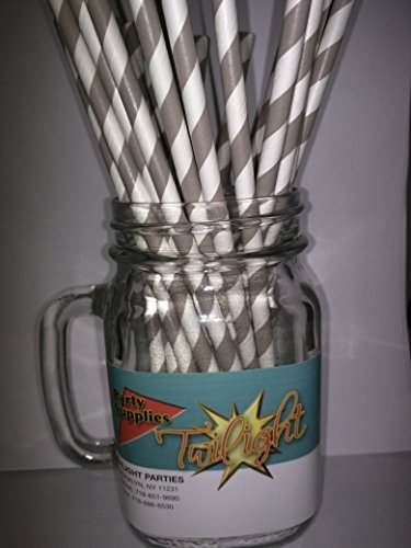 Gray/Grey Candy Striped, Vintage Paper Drinking Straws -100 COUNT - Twilight Parties