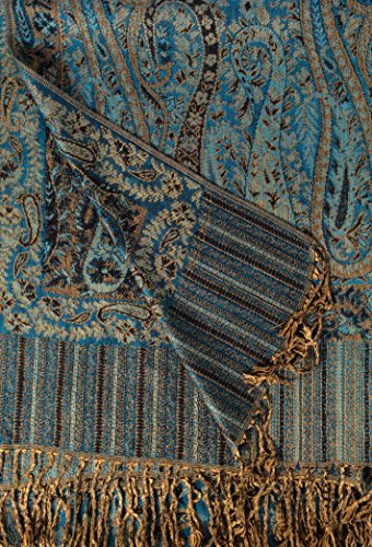 Binding : Apparel Product Description Elegant Pashmina Scarves/Wraps/Shawls. We have searched the world to bring you the best design and luxurious quality available. Elegant soft cashmere,silk viscose blend to drape around shoulders or tie in any one of many styles. Enjoy the height of fashion, or simply keep warm and cozy with gorgeous colors and classy amazing patterns and designs.best dry cleaned. Enjoy several. You will love the soft luxurious feel against your skin. Upgrade your wardrobe with savoir faire Panache ! Show your style while you transform a plain outfit to couture. ? Generous sizing measures 76" by 29" plus 3" fringe on both ends. Pattern is "Bellissimo". Color: Shades of medium and deep Teal touch of black...Gorgeous 0