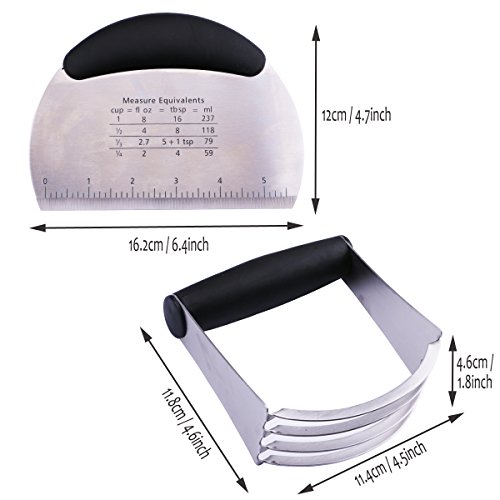 Studio : Yeeco Publisher : Yeeco Product Description One package with two essential kitchen utensils. Multi purpose that you can use them to chop or mix salad, chocolate, cooked veggies, fruits, hard-boiled eggs, cooked potatoes, mashing, slice pizza, clean grill, flipping food, one scoop to transfer chopped food to pot and etc. Easy to clean and for storage. Material: Stainless steel TPR PP Chopper size: 16.2cm x 12cm (6.4" x 4.7") Blender size: 11.8cm x 11.4cm x 4.6cm (4.6" x 4.5" x 1.8") Feature: Non-slip black handle; sharp sturday engineered blade; multi purpose; dishwasher safe Package include: 1 x Pastry Scraper 1 x Dough Blender 0
