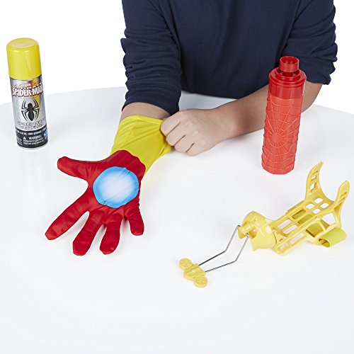 -. Binding : Toy -. Brand : Spider-Man -. EAN : 0630509285778 -. Feature : Fire webs or water just like Iron Spider with the Color Shock Slinger / Load the shooter with web fluid or water / Attach the shooter to the included glove and trigger it with your middle two fingers, just like Iron Spider does / Includes Iron Spider Color Shock Slinger, Spidey Shot Web Fluid, refillable water cartridge, and glove -. IsAdultProduct : 0 -. Label : Hasbro -. Manufacturer : Hasbro -. Model : B2151000 -. MPN : B2151000 -. PackageQuantity : 1 -. PartNumber : B2151000 -. ProductGroup : Toy -. ProductTypeName : TOYS_AND_GAMES -. Publisher : Hasbro -. Studio : Hasbro -. Title : Marvel Ultimate Spider-Man Web Warriors Iron Spider Color Shock Slinger -. UPC : 630509285778 -. Warranty : No Warranty