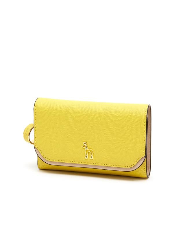 산뜻한 옐로우 바탕에 U라인 배색으로 포인트를 주어 감각적인 중지갑 입니다. 골드링 참장식과 퍼피로고로 더욱 아기자기한 아이템 입니다.
