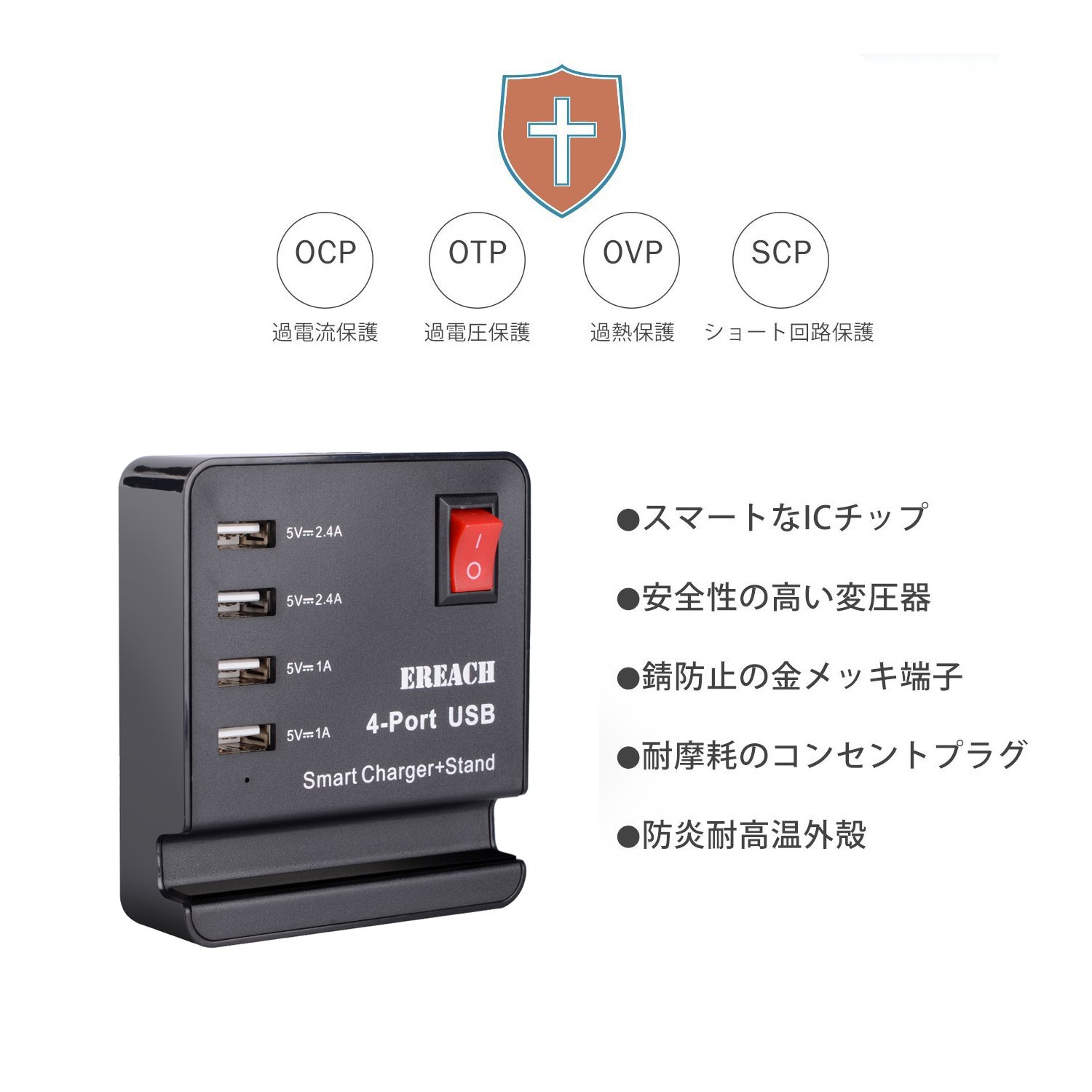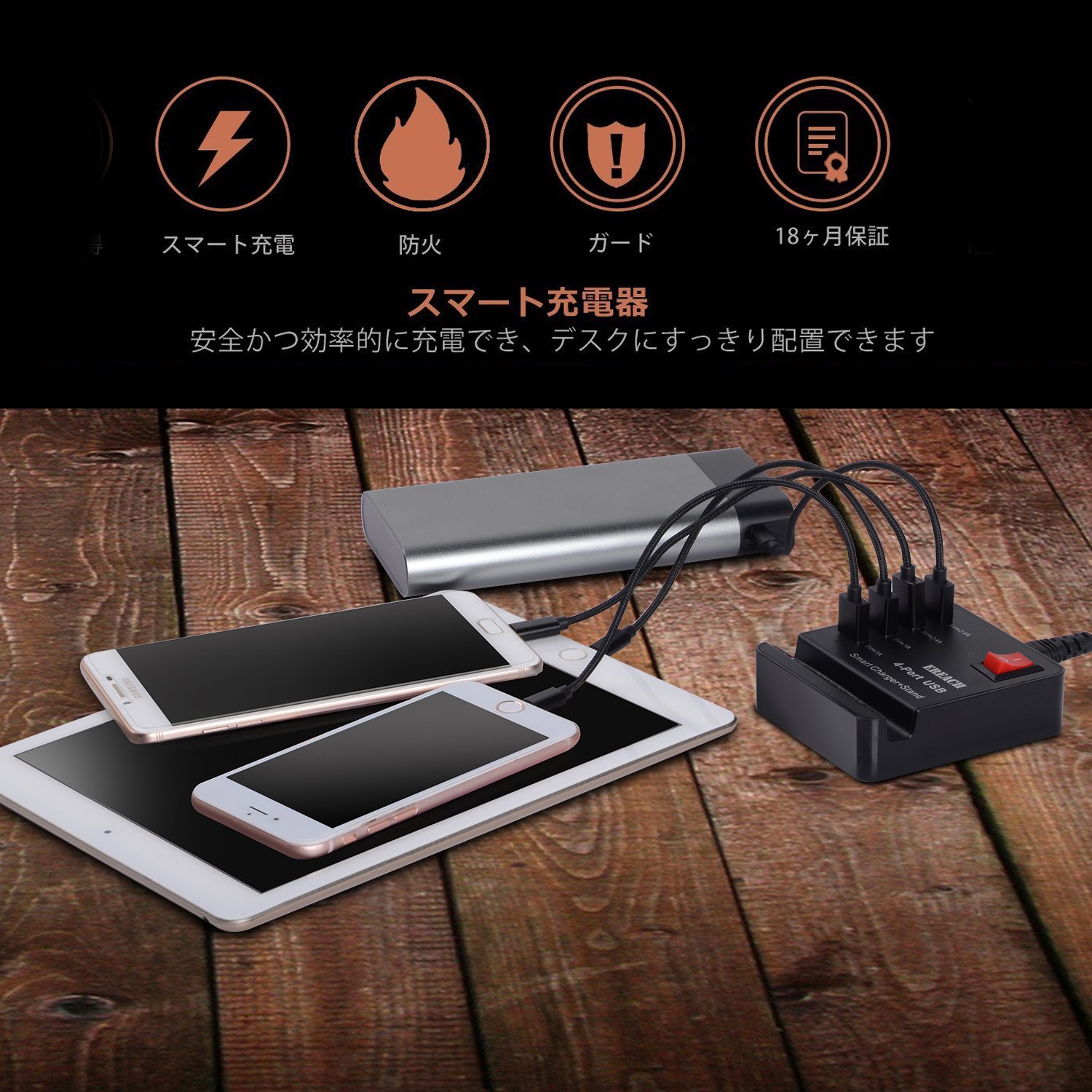 Since four USB ports are installed, it is possible to charge devices compatible with USB charging such as smartphone and iPhone at the same time.