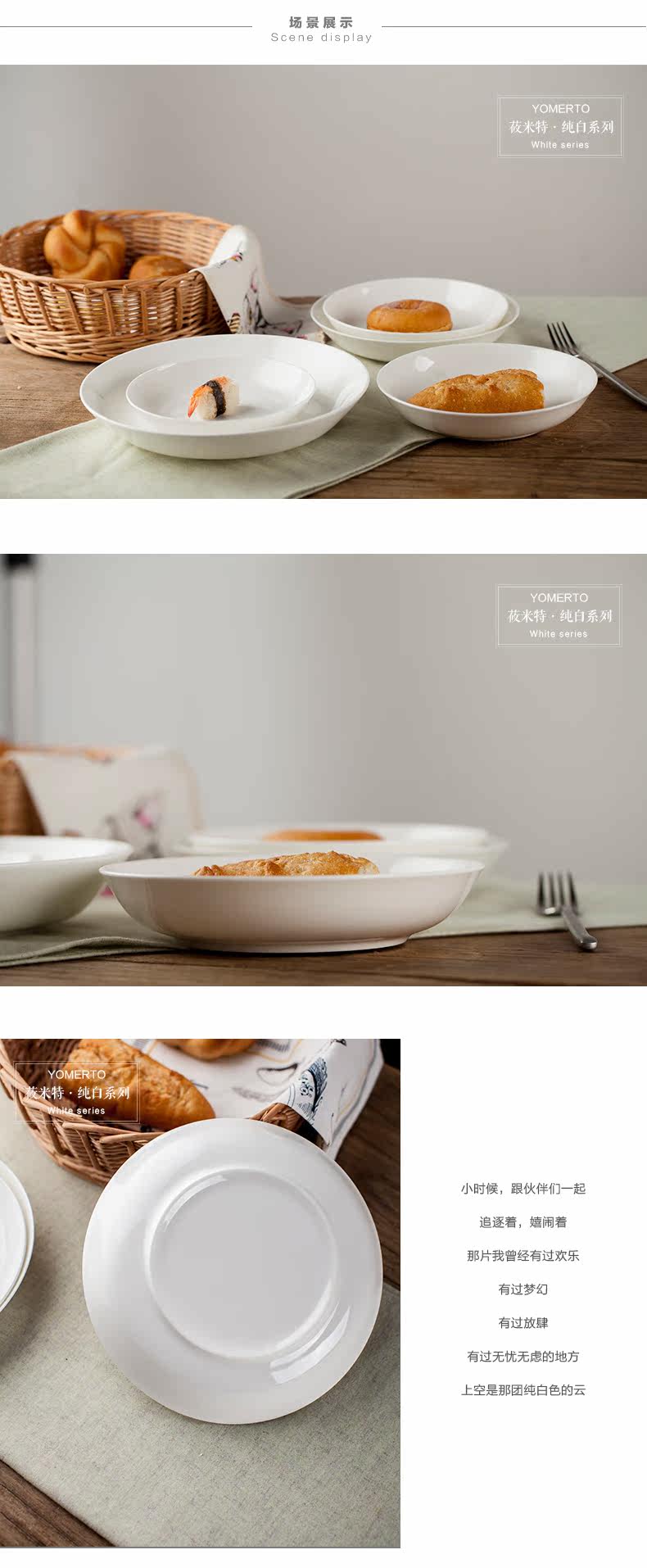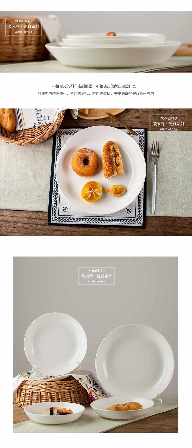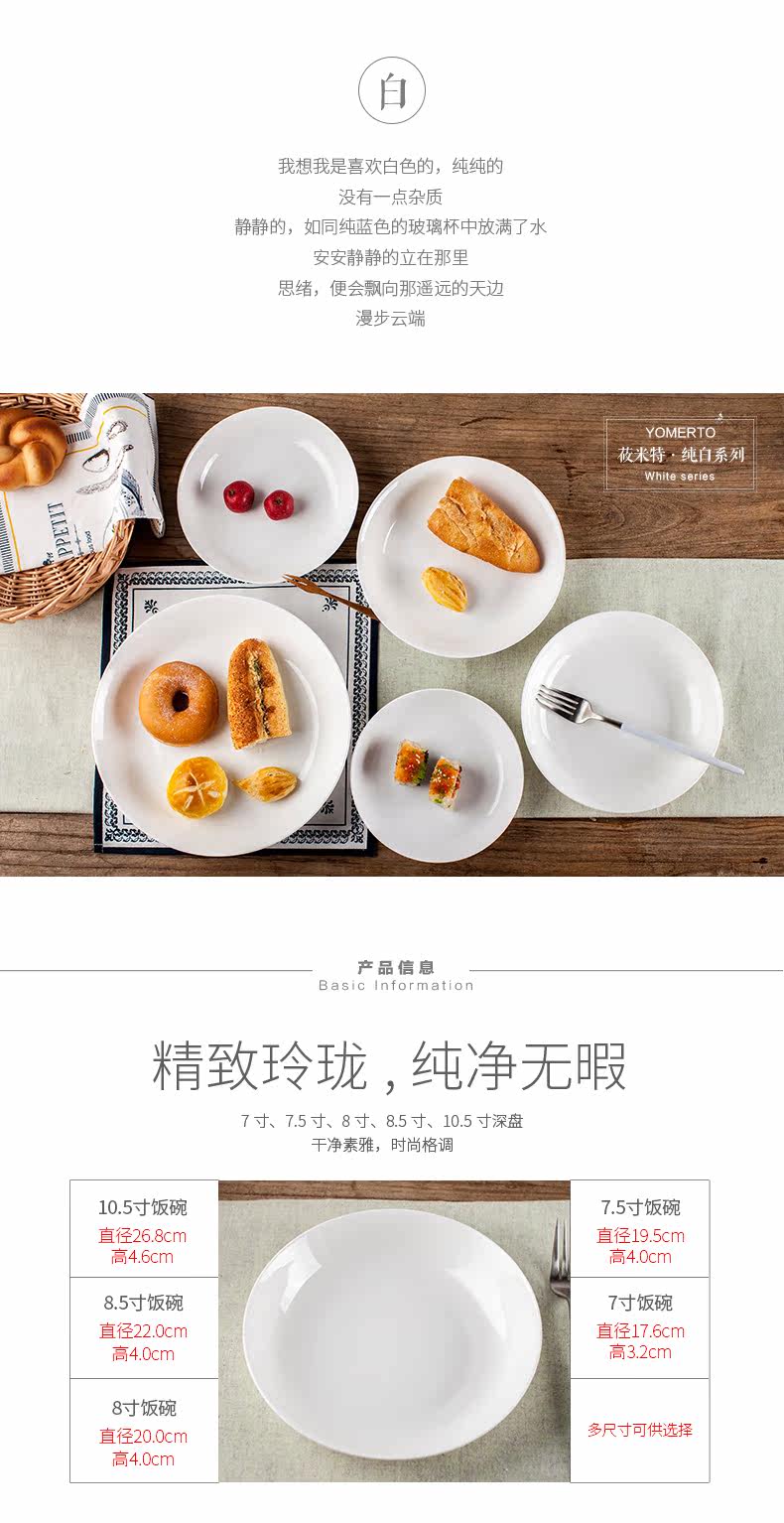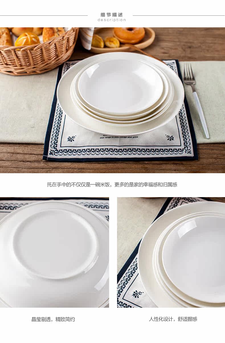 菜盘子碟子套装白色盘子骨瓷家用纯白创意深盘陶瓷器餐具沙拉饭盘