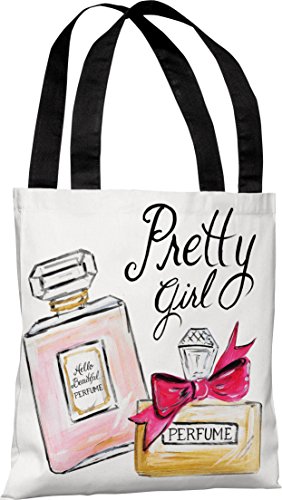 One Bella Casa Pretty Girl Perfume Pink Bow/Multiple Perfumes Tote Bag by Timree Gold, 18"x 18"