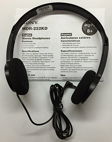 Perfect for your next family road trip or vacation, the Sony MDR-222KD/BLACK Children's Headphones were created to be easy on young ears with moderate volume levels and a lightweight, comfortable design. Relax in silence while your kids enjoy hours of their own personal soundtrack. The volume-limiting resistor cable makes for balanced audio volume that is safe on your child's ears. These headphones are designed to fit children 8-years-old and up. The foam ear cushions offer a secure fit and the over-the-head design lets children enjoy endless music without having to adjust the headphone time and again. With the 13.5Mm drivers with neodymium magnets, the Sony MDR-222KD/BLACK Children's Headphones delivers clear and crisp audio.Feature