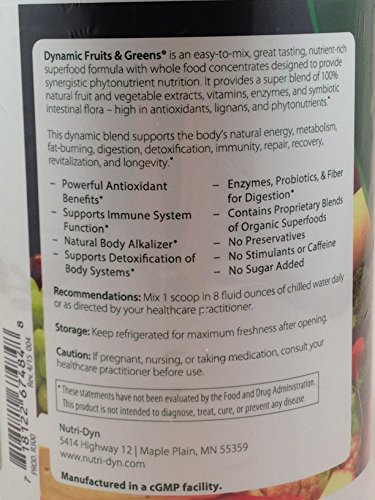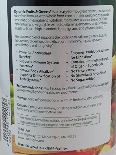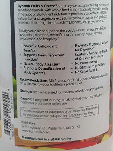 -. Feature : Daily Drink with the Antioxidant Power of 20+ Servings of Fruits & Vegetables! / Organic, Gluten-Free and Non-GMO / Powerful Antioxidant Benefits ~ Supports Immune System Function ~ Enzymes, Probiotics, and Fiber for Digestion ~ Supports Detoxification of Body Systems / Dynamic Fruits & Greens® is an easy-to-mix, great tasting, nutrient-rich superfood formula with whole food concentrates designed to provide synergistic phytonutrient nutrition / No Wheat, Preservatives, MSG, Stimulants, Sugar, or Caffeine