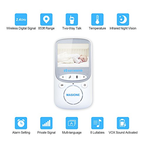 Masione 2.4 Inch Wireless Digital Video Camera Baby Monitor Two Way Audio Night Vision