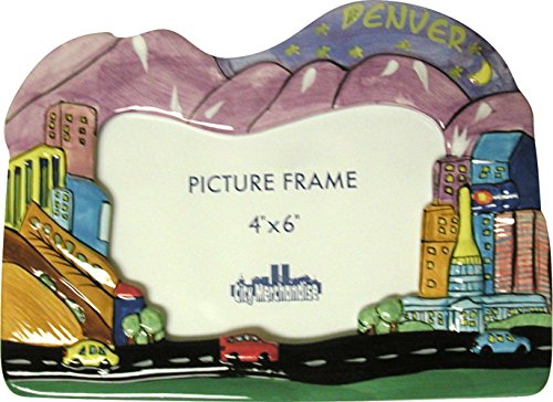 - Famous Hand Painted Landmarks that are featured on this picture frame are the Colorado Rockies, Denver skyline and much more