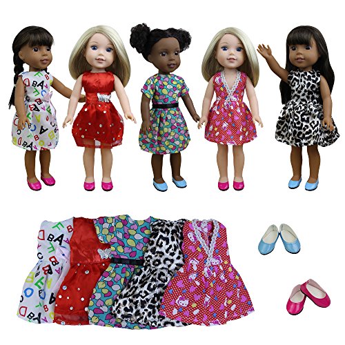 Package includes: 5 PCS OF CHRISTMAS OUTFIT / CLOTHES for 14.5 inch AMERCIAN GIRL (HANDMADE DRESS: 5 PCS of Doll Clothes & 2 pair of Shoes- Ramdon style)