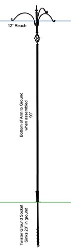 -. Feature : Elegant extra tall three-arm post. / Expertly crafted and detailed. / It stands at a stately height of 99 inches above the ground. / Includes a 21 inch twister ground socket. Holds 30 lbs. / Easy no-tool assembly.