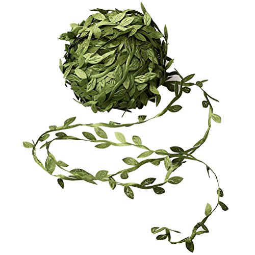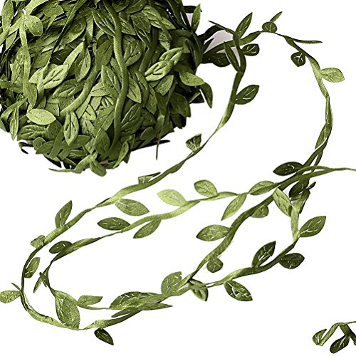 Wode Shop 20 Meters Olive Green Leaves, Green Leaf Trim Ribbon for DIY Craft Decoration