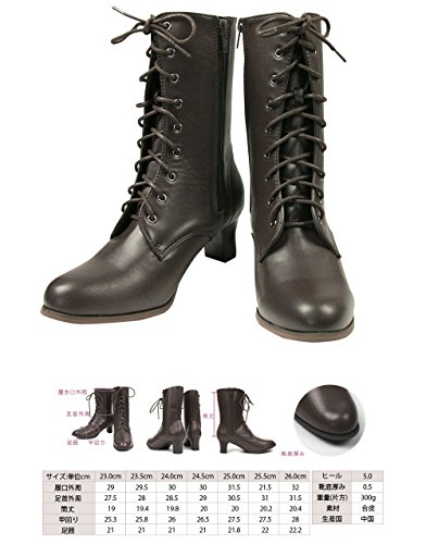 -. Title : (キョウエツ) KYOETSU 卒業式 袴ブーツ 編み上げ 9ホール サイドファスナー 美脚 厚底 黒 茶 22.5cm-26.0cm