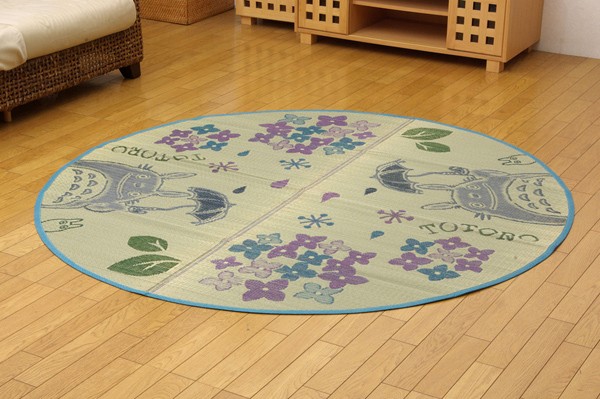 【商品名】純国産 となりのトトロ い草ラグ 『あじさい』 約176cm丸