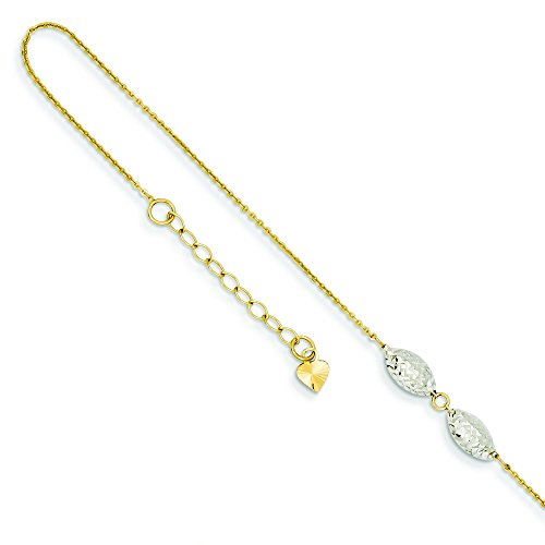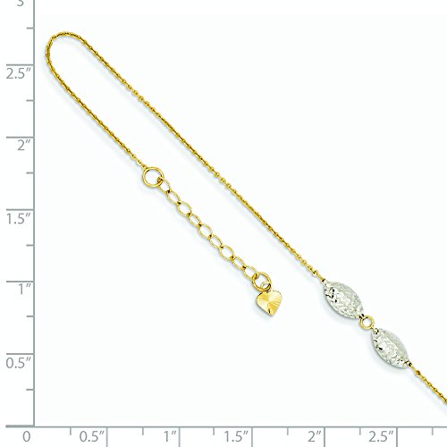 14k Two-Tone Gold Diamond-cut Puff Rice Beads With 1inch Ext Anklet - 9 Inch - 1.1 Grams in 14k Yellow Gold and White Gold - JewelryWeb Style: QTA213060YW - FREE gift-ready jewelry box