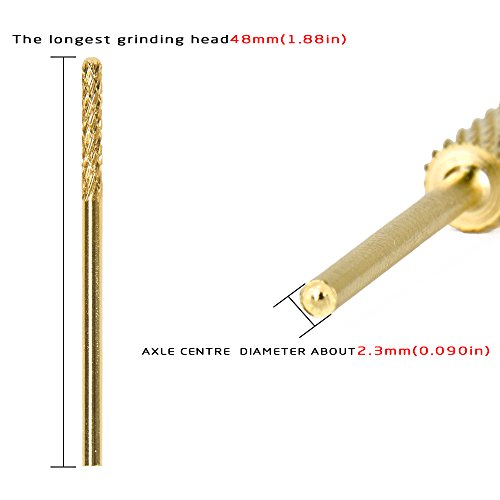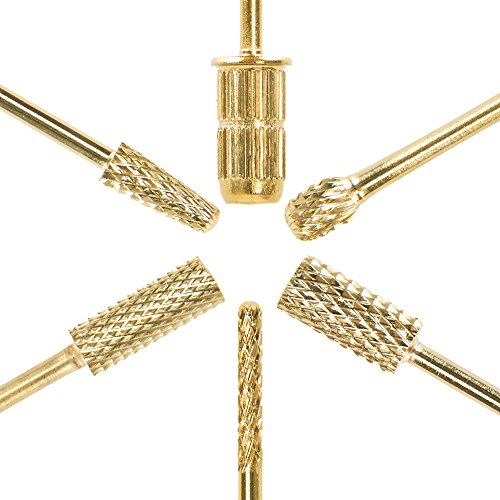 Studio : Subay Publisher : Subay Binding : Misc. Product Description Made with carbide, the hardest material next to diamonds, this 6PCS professional electric nail drill bit set fits most nail drill machines that use 3/32" bits. With gold ergonomic fashionable design, professional quality and comfortable touching feeling, it performs very well in doing different professional jobs, such as carving, engraving, grinding, routing, sharpening, sanding, polishing, drilling, etc., creating less dust with little friction and heat, suitable for acrylic and regular nails, great for manicure as well as pedicure, can be long-term used.