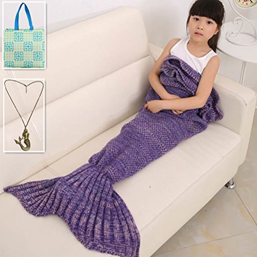 You know, almost all girls and women dream about being a Mermaid Princess. Now Morning-sunshine mermaid tail blanket can help you to make the dream come true! Soft and Cozy Mermaid Tail Blanket Made from premium-grade, Super Soft acrylic material fabric that will keep your children cozy and comfortable on a cold day. Your children can even use it to keep her legs and feet warm while sitting at her desk. It is great for playing at home, sleepovers, around the campfire, watching family movies or anywhere. Perfect gift for child at birthday, Christmas Day or other festivals. Our special mermaid necklace will add more extra fun for children. Our beautiful package will make your children more surprised and excited. PACKAGE INCLUDES: 1 x Morning-sunshine crochet mermaid blanket 1 xMorning-sunshine beautiful gift package 1 xMorning-sunshine exquisite Mermaid Necklace MORNIN-SUNSHINE GIFT: Coming with a exquisite Morning-sunshine mermaid pendant necklace, and a Morning-sunshine beautiful gift package! WHY BUY FROM US We choose a better material Acrylic Fibers, it is eco-friendly and skin-friendly, warm and soft. This multipurpose mermaid tail blanket can keep you warm and comfortable whatever you're at the air-conditioned room in summer or lying in bed in winter! The Morning-sunshine mermaid tail blanket will definitely be the best choice as birthday and Christmas gift! Only Mornin-sunshine can give you the special gift package and mermaid pendant necklace for adding more extra surprise. Note: Smell is normal on the product, wash and dry in the sun,and the smell will disappear. 0