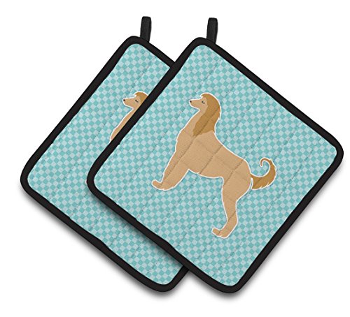 Caroline's Treasures Afghan Hound Checkerboard Blue Pair of Pot Holders BB3706PTHD, 7.5HX7.5W, Multicolor
