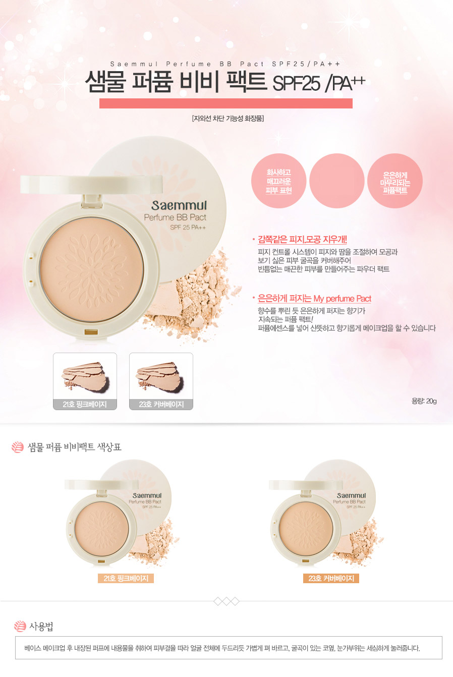皮脂コントロールシステムが皮脂と汗をコントロールして 肌のでこぼこをカバーしてつや肌に仕上げてくれます! 【カラー】 21号ピンクベージュ、23号カバーベージュ 【商品構成】 センムルパフュームBBパックト1個 20g