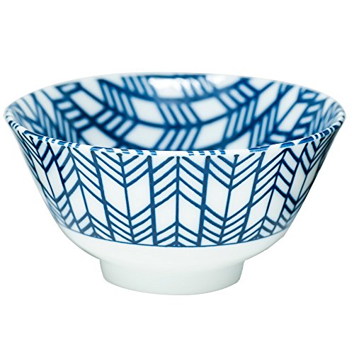 (ISSIKI JAPAN)/Kitchen Dining/Tableware/DIRECT FROM USA/Japanese rice bowl, Porcelain, lucky charm patterns “Yabane” (arrow feathers), Blue and white p...