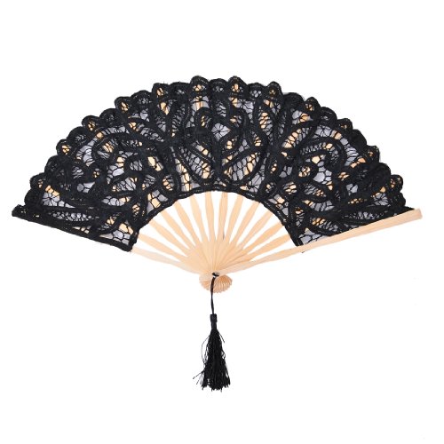 -. Title : Remedios Vintage Cotton Lace Tassle Hand Fan for Photo Props Decoration