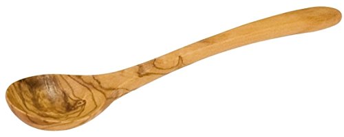 - Made from oiled olive wood; measures 5-1/2-inches long; approximate capacity of a teaspoon