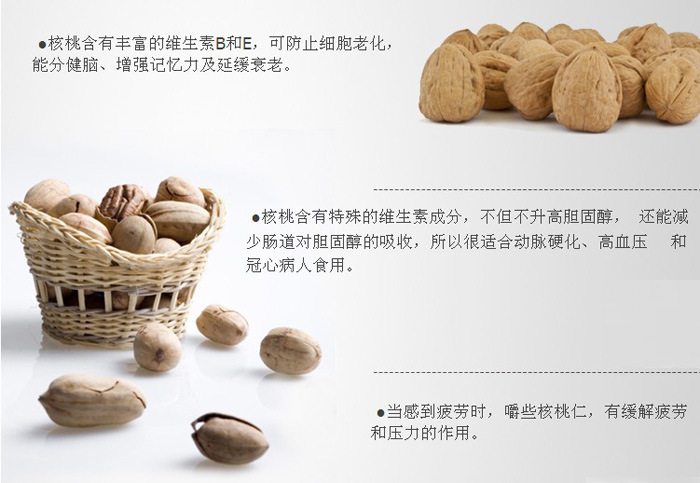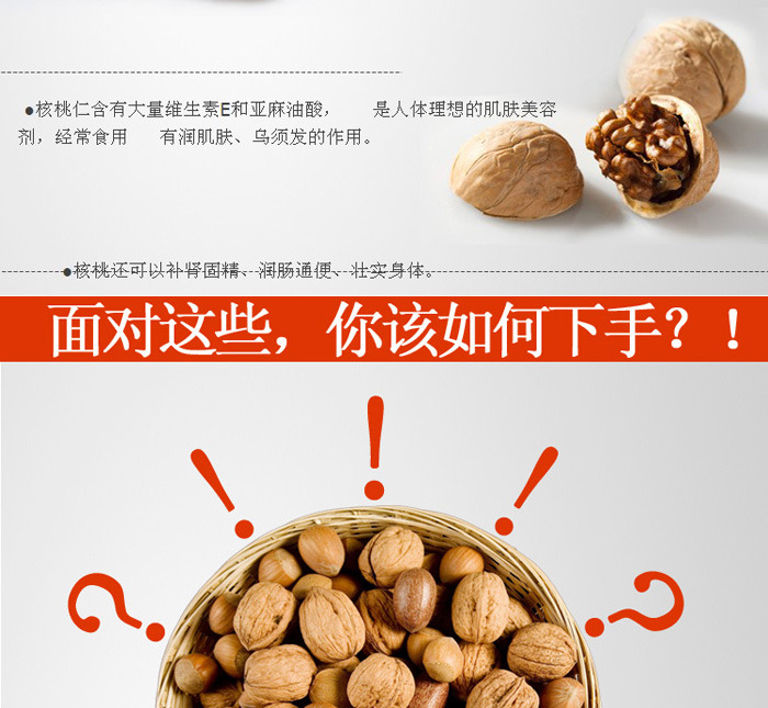 So many benefits of walnut? can be eaten as a snack? also can make cakes? pastries? and can be used as a nutritional cooking to eat? after all? good food mill? walnut solid walnut shell protection is too good? we want to eat it? Hey ~ ~ it is really have to work foryou.