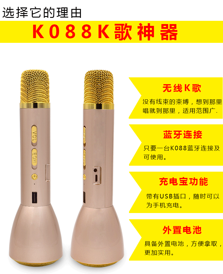 1.全新的K歌体验,无线连接,上手就唱。