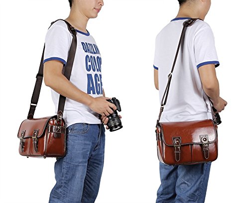 BAOSHA Baosha CB-02 Vintage PU Leder DSLR Kameratasche Messenger Umhangetasche mit stossfest Einsatz Wasserdicht (Herausnehmbar Interieur) Medium