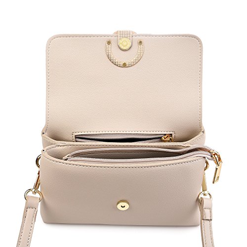 The color is a very light beige, so it can match any of your favorite clothes and shoes.Crossbody phone purse design with superior soft Genuine PU leather ,which is durable and nice.