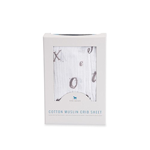 -. Title : Little Unicorn Cotton Muslin Fitted Sheet - Hello Alphabet, Black, White