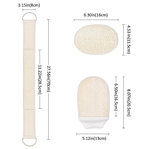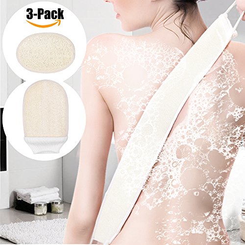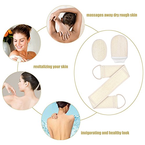3 PCS Bath Set, Includes Loofah Back Scrubber, Body Glove and Face Pad Perfect for Bath Shower and Spa