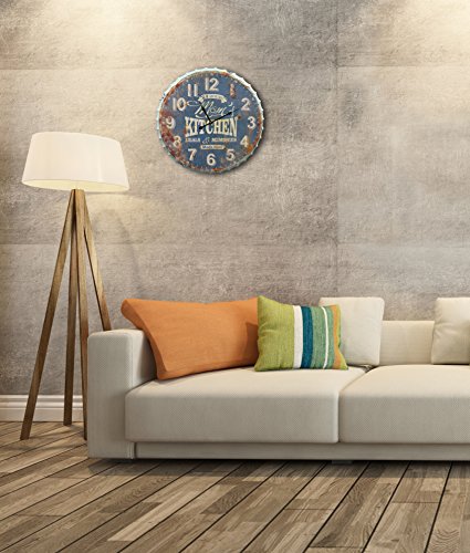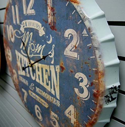-. Binding : Kitchen -. Brand : HDC International -. Color : Blue -. EAN : 0190480501323 -. Feature : Vintage retro look / 3D look with a depth of almost 3 inches off the wall / Fashionable colors / Extra Large 2 feet wide! / Quartz movement Runs on just 1 AA battery (not included) -. IsAutographed : 0 -. Label : HDC International -. Manufacturer : HDC International -. Model : 05-0067 -. MPN : 05-0067 -. PackageQuantity : 1 -. PartNumber : 05-0067 -. ProductGroup : Home -. ProductTypeName : HOME -. Publisher : HDC International -. Size : 24x24 inches -. Studio : HDC International -. Title : Round Mom's Kitchen Decorative Metal Wall Clock Retro Antique Look Bottle Cap 3D Extra Large 24 x 24 Inches Quartz movement -. UPC : 190480501323