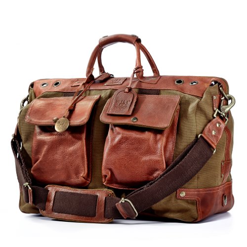 -. Brand : Will Leather Goods -. Department : mens -. Feature : 21" X 14-1/2" X 7-3/4" / TrustedWill Leather Goods sturdy and durable construction takes quality to the next level / Leather, thick 18 ounce cotton canvas, 10 twill backing and steel-molded hardware make this bag stylishly red to last / Makes a stylish gift for any man on your list / Washed cotton canvas and bridle leather. 2 large front pockets. -. ProductGroup : Apparel -. ProductTypeName : LAGE -. Title : Will Leather Goods Men's Canvas Traveler Duffel Bag