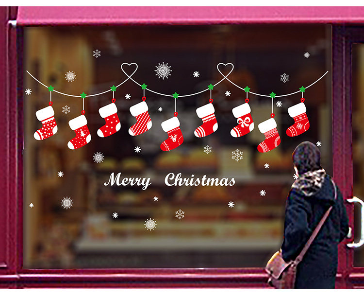 商场店铺橱窗户玻璃墙纸贴画墙贴纸圣诞节日雪花圣诞袜窗花贴纸