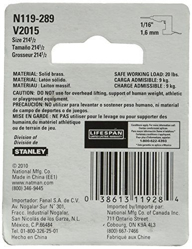 National Hardware V2015 #10, 1-3/8" Large Screw Eye in Solid Brass