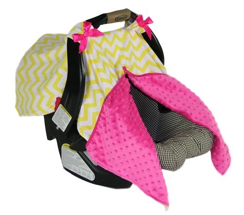 -. Title : BayB Brand Car Seat Canopy - "Yellow Chevron / Hot Pink"